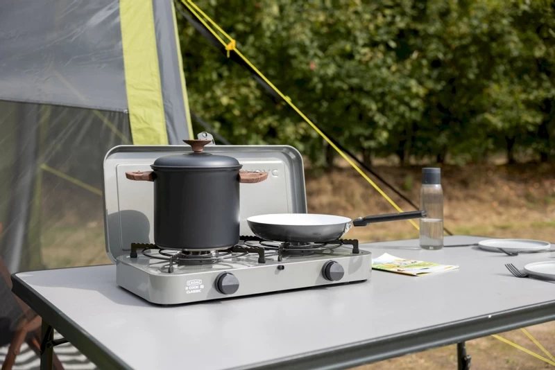 Ideaal voor op kampeervakantie: het CADAC 2-Cook Classic Stove kooktoestel. Dit lichtgewicht 2-pits kooktoestel kenmerkt zich door de 2 onafhankelijke kookgedeeltes. De 2-Cook Classic Stove is verder voorzien van rubberen antislipvoetjes en wordt geleverd met 2 pandragers.
