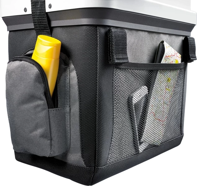 De elektrische koelbox heeft aan de buitenkant handige opbergvakken. Aan de voorkant zit een groot opbergvak waar je bijvoorbeeld je powerbank of zonnebrand in bewaart. Een handig opbergvak voor spullen waar je snel en bij wilt! Het opbergvak met ritssluiting aan de zijkant is ideaal voor je telefoon, sleutels, of andere waardevolle spullen.