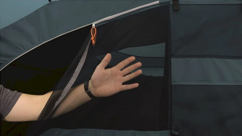 Wanneer je met meerdere mensen in een tent slaapt is goede ventilatie noodzakelijk. De grote ramen en voldoende staruimte zorgen voor een ruimtelijk gevoel in de tent. Het diepe voorluifel en de grote luchtopeningen geven daarnaast extra ruimte in de tent. Verschillende ramen en ventilatieopeningen zijn voorzien van een gaas met kleine diameter. Hierdoor komt frisse lucht binnen, maar blijven vervelende insecten als muggen en spinnen lekker buiten. De vensters aan de voorkant en zijkanten van de tent kun je afsluiten of vrijmaken met de oprolbare gordijnen. Tocht? Die zul je niet voelen in de tent door het ingenaaide grondzeil.